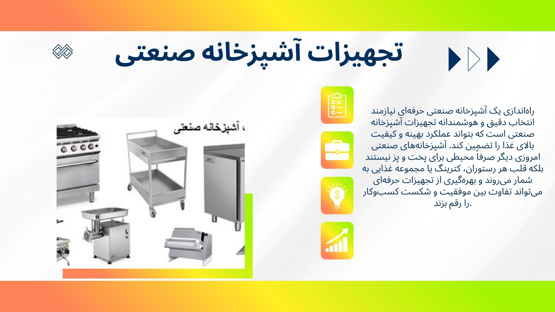 فروشگاه تجهیزات با ارائه تنوع محصول، مشاوره تخصصی و پشتیبانی مناسب، به عنوان یکی از گزینه‌های قابل اعتماد در زمینه فروش تجهیزات آشپزخانه صنعتی شناخته می‌شود و می‌تواند همراهی مطمئن برای راه‌اندازی یا توسعه آشپزخانه‌های صنعتی باشد. برای خرید تجهیزات آشپزخانه صنعتی از طریق سایت اقدام فرمایید.